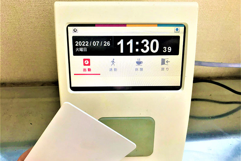 ペーパーレスを進め業務効率化を図る為に、紙ベースのタイムカードからICカードへと変更を実施しました。